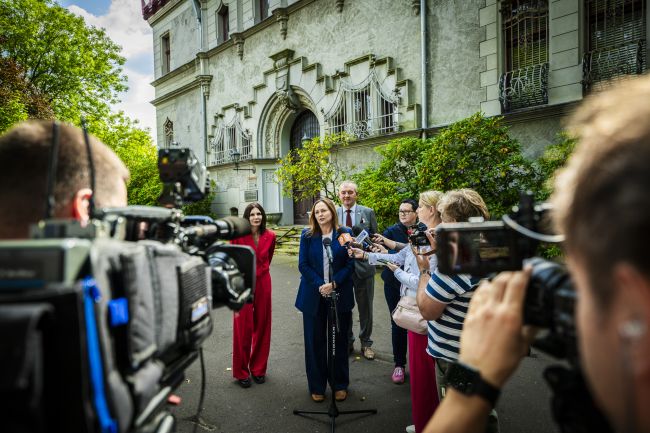A press briefing was held in front of Reinhold Richter’s villa, where Prof. Jóźwik outlined the planned renovation and conservation works that will be carried out thanks to EU funding provided by the Łódź Voivodeship Government.